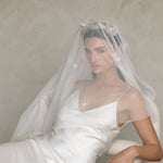 The Zinnia Veil is cathedral length and measures 2,7m from crown to train. The blusher is 65cm.