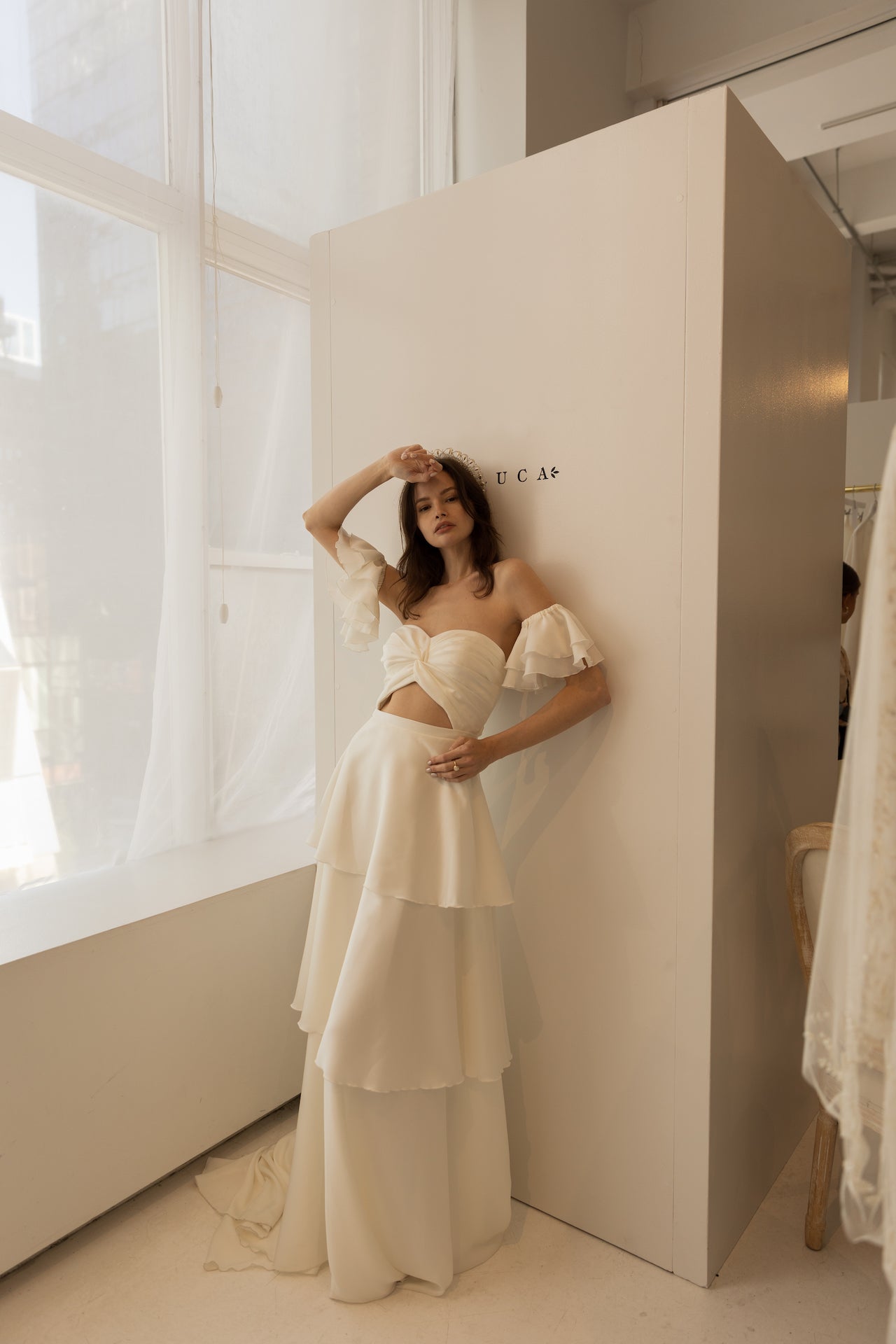 Each Temple piece is expertly tailored by our bridal seamstresses in Europe. Crafted from a selection of soft crêpes and satins, delicate tulles and French laces - each gown is made to measure to ensure an impeccable fit. All Temple gowns are made-to-order and take 6-8 months to create.